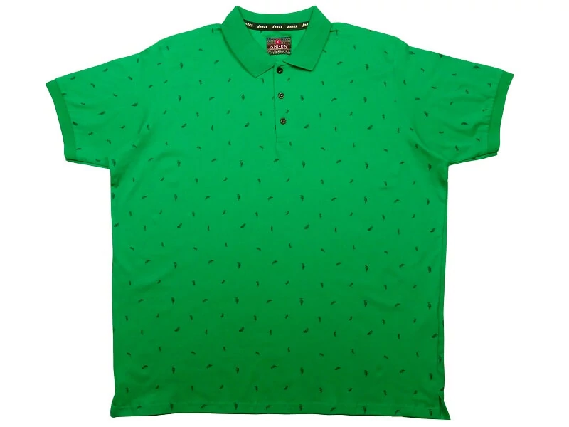 Ha fontos Önnek az elegancia és a kényelem, akkor ez az apró mintás, zöld színű nagyméretű galléros póló egy tökéletes választás a nyári melegben. Az ingpóló egészét sötétkék színű páfrány levelek díszítik. Gombjai sötétkékek akárcsak a rövid ujjú póló mintája. A gallér alakja és mérete tökéletesen illeszkedik az arcformához, míg a rövid ujjak lehetővé teszik a szabad mozgást. Az elasztikus anyag remekül illeszkedik minden típusú testalkathoz, így mindig jól fog kinézni. Sportosan elegáns, ezért jól passzol a rövidnadrágokhoz, farmerekhez vagy az elegánsabb nadrágokhoz is. Viselje a hétköznapokban, baráti összejövetelekre, nyaralások alkalmával. Ezzel a galléros pólóval az átlag feletti méretekkel vagy pocakkal rendelkező férfiaknak sem kell lemondania a kényelmes eleganciáról. Mutatós ruhadarab, ami vonzza az elismerő tekinteteket. 2XL, 3XL, 4XL, 5XL, 6XL méretekben rendelhető.