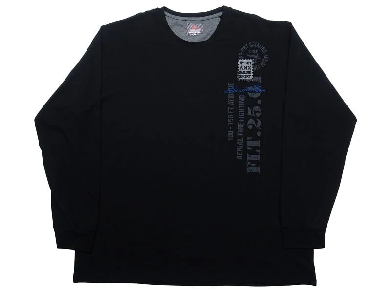A hosszú ujjú pólók a hideg napok jolly joker ruhadarabja: melegebb, mint egy hagyományos póló, miközben kellően vékony ahhoz, hogy egy pulóvert még rávehessen. Ez a fekete színű nagyméretű hosszú ujjú, kerek nyakú póló nem csak megvédi a hidegtől, de stílusos megjelenést is kölcsönöz. A póló elejét hímzett és nyomott felirat díszíti, az ujja passzés, az alja egyenes szabású. Viselje a hétköznapokon egy stílusos farmerral. Egy mellénnyel vagy dzsekivel igazi ütős páros a hűvösebb őszi reggeleken. Rugalmas pamut anyagának köszönhetően akár a nagyobb pocakkal rendelkező férfiaknak is kényelmes viseletet biztosít a hűvös napokon. Nagy 2XL, 3XL, 4XL, 5XL, 6XL méretekben rendelhető.