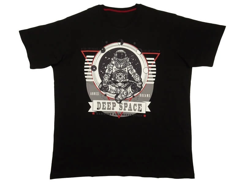 Divatos rövid ujjú póló a hétköznapokra: nyáron önmagában, télen akár aláöltözetnek is kiváló. Ez a fekete színű, kerek nyakú nagyméretű férfi póló a legnagyobb hőségben is kellemes viseletet biztosít. Hétköznapokra, munkába járáshoz, szabadidős tevékenységekhez vagy akár sportoláshoz is megfelelő viselet. Egy farmerral vagy rövidnadrággal kiegészítve stílusos megjelenést kölcsönöz. Elejét nagy űrhajós minta és felirat teszi egyedivé. Hűvösebb időben kardigánnal vagy pulóverrel is remekül mutat. Nagy 2XL, 3XL, 4XL, 5XL, 6XL méretekben kapható. Kényelmes viselet egész napra.