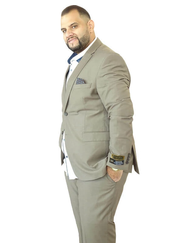 Nagyméretű elegáns bézs színű öltöny. Ez az öltöny kifejezetten testes, pocakos, mackós testalkatú férfiak igényeire lett szabva. A zakó nyitott hajtókás gallérral, mellzsebbel, két gombos záródással, zsebfedős oldalzsebekkel valamint belső zsebekkel rendelkezik. Mandzsettája elegáns négy gombos. Hátul két sliccel rendelkezik, ami igazán praktikus megoldást jelent a pocakkal rendelkező férfiak részére. Ez az öltöny remek választás hétköznapokra, üzleti megbeszélésre vagy akár szíve választottjának meghódítására! Ha számít a megjelenés, jöjjön el üzletünkbe és válogasson széles kínálatunkból. Üzletünkben nem csak segítünk kiválasztani a megfelelő fazont és méretet, hanem amennyiben szükséges helyben Önre igazítjuk a kiszemelt öltönyt.