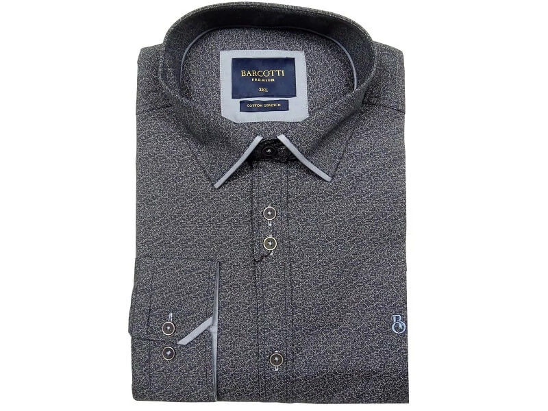 Stílusos és elegáns megjelenés a mindennapokra: sötétkék színű, szürke dupla galléros és dupla gombos nagyméretű férfi hosszú ujjú ing, mely tökéletesen alkalmas irodai munkához, megbeszélésekre, tárgyalásokra, de akár a hétköznapokra is egy farmerral vagy sportos zakóval kiegészítve. Az ing különlegessége a részletekben rejlik. A gallér és a mandzsetta szürke szegélye, a csíkos gombok valamint a mellkason lévő apró hímzés különös eleganciát sugall. A sötétkék alapot szürke háló szerű vonalak töltik ki. Öltözzön a legújabb trend szerint és zsebelje be az elismerő pillantásokat! Klasszikus, egyenes fazon, nagy XL-5XL méretekben rendelhető.