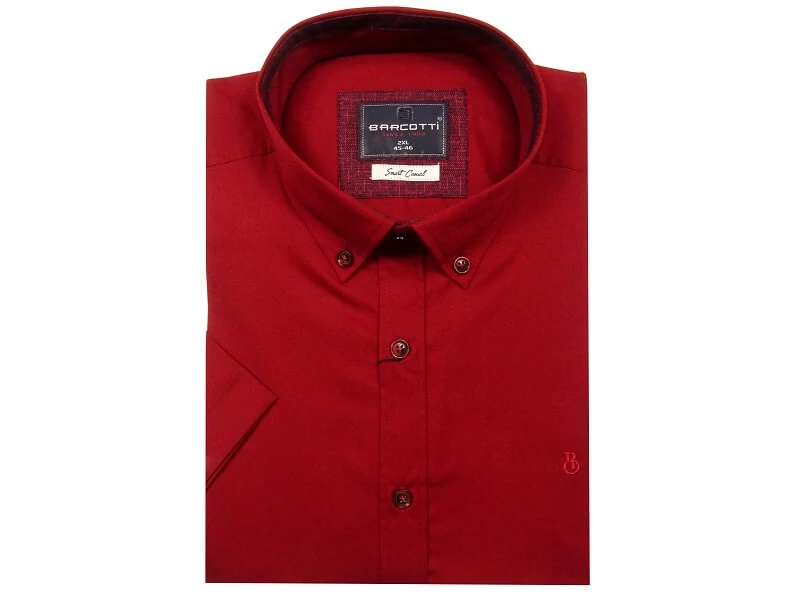 Tökéletes elegancia hétköznapokra és különleges alkalmakra: bordó színű, minta nélküli nagyméretű férfi rövid ujjú ing legombolható gallérral, mely ideális választás irodai munkához, megbeszélésekre, tárgyalásokra de akár a hétköznapokra is egy farmerral vagy sportos zakóval kiegészítve. Minta nélküli, egyedi bordó színátmenetes gombokkal. Mellkasát apró hímzés díszíti. Klasszikus, egyenes fazon kifejezetten testes, pocakos férfiak igényeinek megfelelő szabással. Közkedvelt, alapdarab a férfiak körében. 2XL, 3XL, 4XL, 5XL, 6XL méretekben kapható.