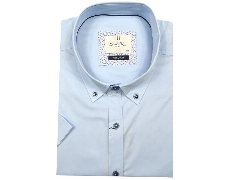 Tökéletes elegancia hétköznapokra és különleges alkalmakra: kék színű, minta nélküli nagyméretű férfi rövid ujjú ing legombolható gallérral, mely ideális választás irodai munkához, megbeszélésekre, tárgyalásokra, esküvőre de akár a hétköznapokra is egy farmerral vagy sportos zakóval kiegészítve. Minta nélküli, egyedi színátmenetes gombokkal. Mellkasát apró hímzés díszíti. Klasszikus, egyenes fazon kifejezetten testes, pocakos férfiak igényeinek megfelelő szabással. Közkedvelt, alapdarab a férfiak körében. 6XL, 7XL, 8XL, 9XL méretekben kapható.