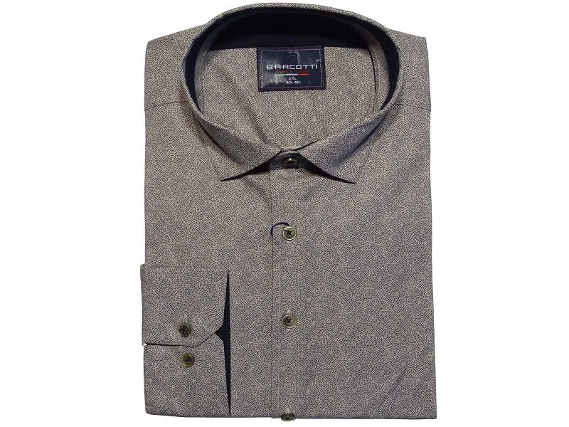 2XL, 3XL, 4XL, 5XL, 6XL méretű, férfi hosszú ujjú ing. A drapp alapot a szimmetrikusan elhelyezkedő, keki színű minta teríti be, ami olyan mintha egy varázslatos kaleidoszkópba néznénk bele. A sötét és világos árnyalatok pompája valamint az egyedi mintázat teszi ezt a nagyméretű hosszú ujjú inget páratlanná. Az arany színben fénylő gombok remekül passzolnak a bézs-keki színkombinációhoz. A tervezés során nem csak a külsőre, hanem a belsőre is figyeltek, éppen ezért a gombsor és a mandzsetta belseje kontrasztos sötétkék színben díszeleg. Ha szereti amikor minden tekintet Önre szegeződik, válassza ezt B. Keki Kaleidoszkóp hosszú ujjú inget! Bézs árnyalatú nadrágokkal garantált a tökéletes megjelenés! Egyenes szabású, rugalmas pamut anyagból készült, kifejezetten a nagyobb méretekkel rendelkező férfiak részére.