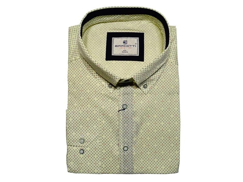Legombolható galléros férfi hosszú ujjú ing, extra nagy 6XL, 7XL, 8XL, 9XL méretekben. Vidám, fiatalos halványsárga színű ing, melyet apró kék színű "x" -ek és piros pöttyök díszítenek. A mintázat nem folytonosan helyezkedik el, elvétve üres négyzetek, keresztek rajzolódnak ki. Gombjai sikkesen zöld csíkosak. Színesítse meg a szürke hétköznapokat ezzel a nem mindennapi B. EXTRA NAGY, halványsárga mintás hosszú ujjú inggel. Egyenes fazon, kifejezetten az átlagnál nagyobb méretekkel rendelkező férfiak igényeire szabva. Ebben a kényelmes, rugalmas pamut ingben biztosan jól fogja magát érezni bármilyen alkalomra is választja! Sportos elegáns megjelenéshez viselje farmernadrággal, elegáns megjelenéshez öltönnyel. Kiváló rugalmas pamut anyaga gondoskodik kényelméről akár egész nap. Extra nagy méretekben rendelhető 6XL-9XL-ig.