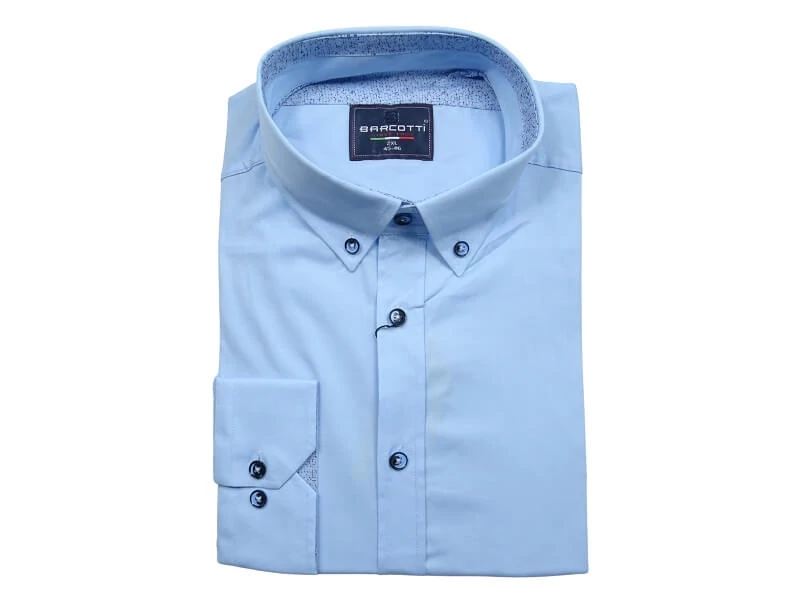 Valódi elegancia a mindennapokra: minta nélküli, világoskék színű, hosszú ujjú nagyméretű férfi alkalmi ing legombolható gallérral, mely tökéletesen alkalmas irodai munkához, megbeszélésekre, tárgyalásokra, esküvőre de akár a hétköznapokra is egy farmerral vagy sportos zakóval kiegészítve. Textúrája letisztult, cirmos gombjai remekül passzolnak az ing egészéhez. Mindenhez és minden alkalomra ideális választás. Klasszikus, egyenes fazon, minden korosztálynak kötelező alapdarab! Nagy 2XL-6XL méretekben rendelhető.