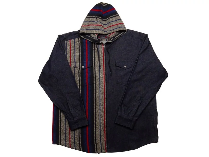 B.Winter kék-piros férfi nagyméretű kapucnis farmering bemutatása: