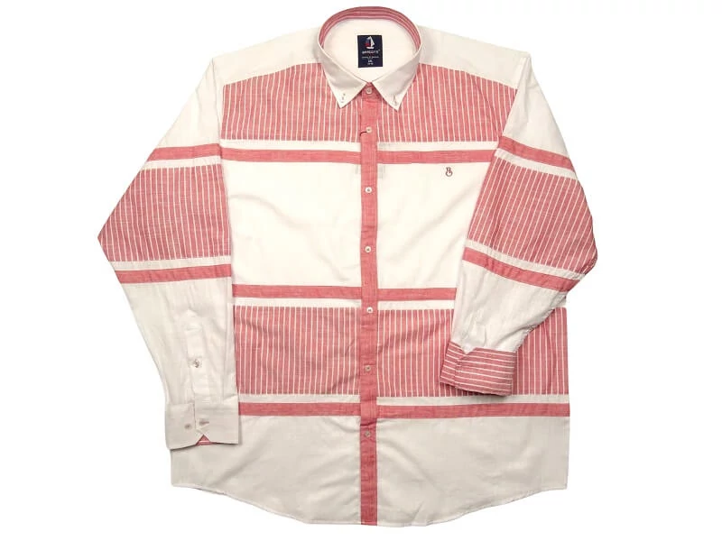 B.Fehér korall csíkos nagyméretű férfi hosszú ujjú lenvászon ing bemutatása