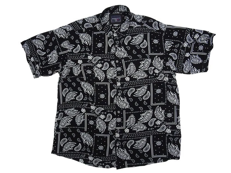 B.Fekete, fehér mintás nagyméretű férfi rövid ujjú viszkóz ing bemutatása