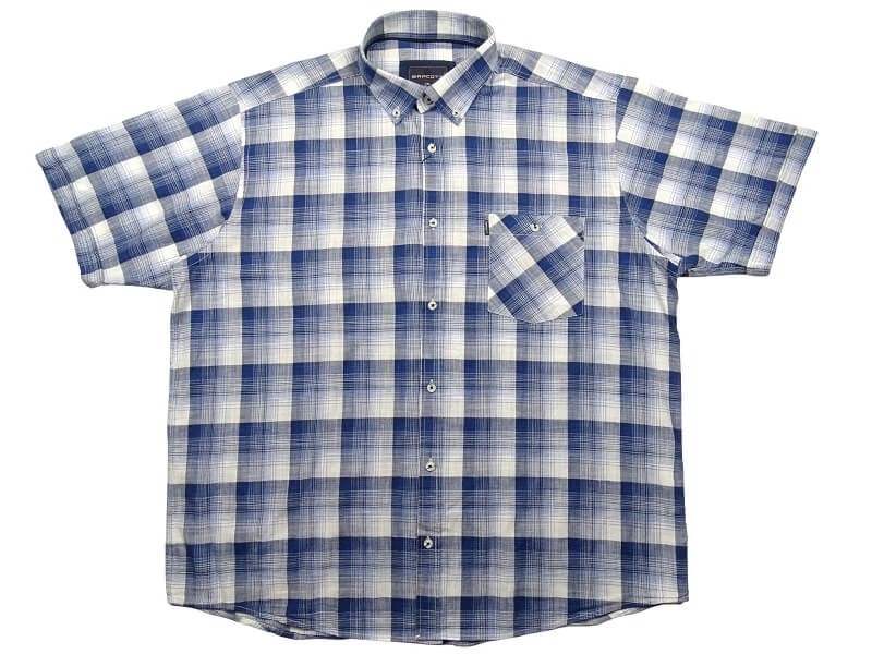 Tökéletes sportos elegancia hétköznapokra és alkalmakra: kék-fehér kockás, nagyméretű férfi rövid ujjú ing, mely ideális választás hétköznapokra, nyaralásra vagy munkába. Hosszú vagy rövidnadrággal is jól kombinálható alkalomtól függően. A kockás ingen a kék, sötétkék, fehér színek dominálnak. Legombolható galléros, mellkasán egy zseb található, a gombok foltosak, márvány hatásúak. Klasszikus, egyenes fazon kifejezetten testes, pocakos férfiak igényeinek megfelelő szabással. Nagy 2XL, 3XL, 4XL, 5XL, 6XL méretekben rendelhető.