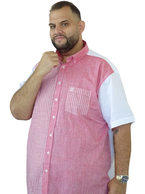 Korall-fehér csíkos, legombolható galléros férfi rövid ujjú ing nagy méretben! Mellkasi részén csíkos zseb található, apró hímzéssel. Közkedvelt vászon anyagból készült, ami a nyári melegben jó szellőzést biztosít bőrének! Ebben az ingben akár a vízparton, akár a városban is jól fogja magát érezni. Viselje lazán, elegáns rövidnadrággal vagy akár egy hosszú farmernadrággal! Kerti partira vagy akár hétköznapi viseletre is tökéletes választás. Könnyed akárcsak a nyári szellő és divatos akárcsak Ön! Legyen elegáns a meleg időben is, próbálja ki ezt a nagyméretű trendi, csíkos vászon rövid ujjú inget.