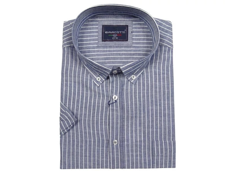 B.Szürke csíkos, zsebes férfi nagyméretű rövid ujjú lenvászon ing bemutatása