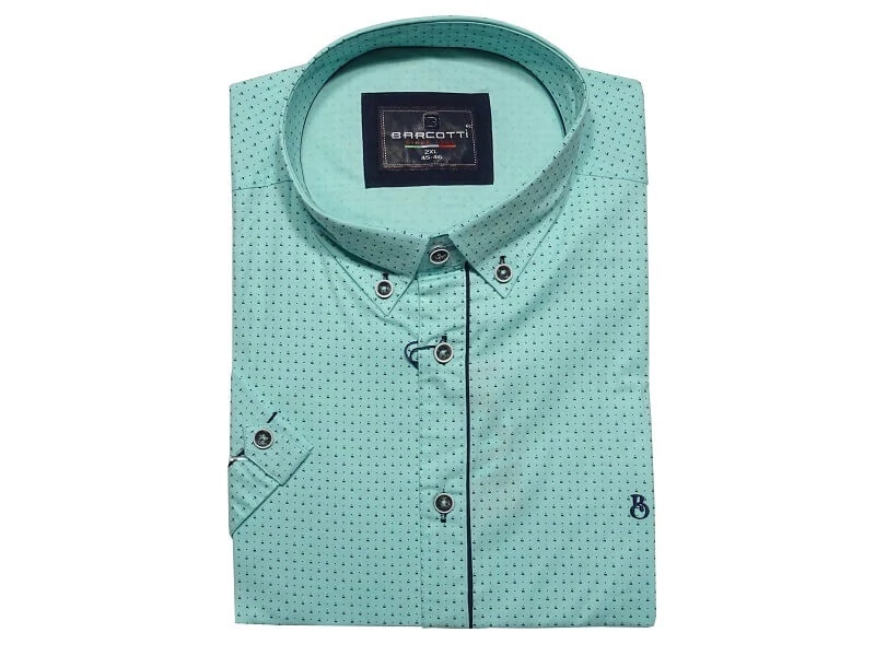 Türkizkék színű, nyári nagyméretű férfi rövid ujjú ing legombolható gallérral. Az idei tavaszi/nyári szezon egyik legkedveltebb színe a türkizkék. Vidám, pasztell színéről a tenger, a frissítő nyári szellő jut eszünkbe. Az ing egyedisége nem csak a színében, hanem a részleteiben rejlik. A sötétkék apró minta, a gombpánt szegélye, a rusztikus gombok és a hímzett minta jól láthatóvá válik a türkizkék alapon. Összességébe nézve a B. Türkiz mintás rövid ujjú ing vidám, könnyed és játékos! Ha unja már a hagyományos színeket, ez az ing nem hiányozhat ruhatárából! Attól függően, hogy milyen összhatást szeretne elérni, viselheti rövid vagy hosszú nadrággal, elegánsabb vagy akár a sportosabb farmerhoz is. Rugalmas pamut anyaga, a meleg nyári napokon is gondoskodik kényelméről! Nagy méretekben rendelhető: 2XL, 3XL, 4XL, 5XL, 6XL.