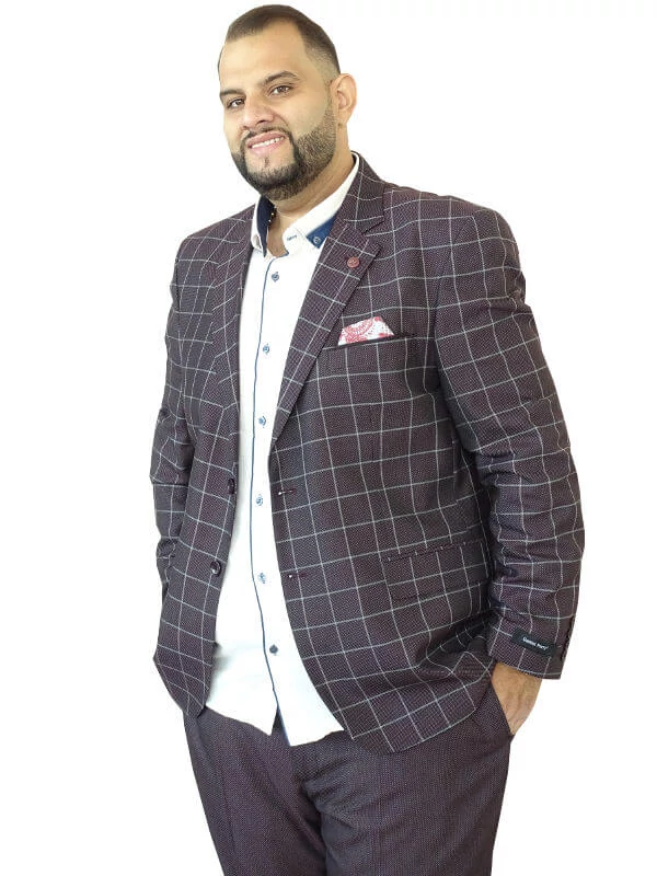Nagyméretű divatos, elegáns lila színű, kockás öltöny. Ez az öltöny kifejezetten testes, pocakos, mackós testalkatú férfiak igényeire lett szabva. A zakó nyitott hajtókás gallérral, mellzsebbel, két gombos záródással, zsebfedős oldalzsebekkel valamint belső zsebekkel rendelkezik. Mandzsettája elegáns négy gombos. Hátul két sliccel rendelkezik, ami igazán praktikus megoldást jelent a pocakkal rendelkező férfiak részére. Ez az öltöny remek választás hétköznapokra, üzleti megbeszélésre vagy akár szíve választottjának meghódítására! Ha számít a megjelenés, jöjjön el üzletünkbe és válogasson széles kínálatunkból. Üzletünkben nem csak segítünk kiválasztani a megfelelő fazont és méretet, hanem amennyiben szükséges helyben Önre igazítjuk a kiszemelt öltönyt.
