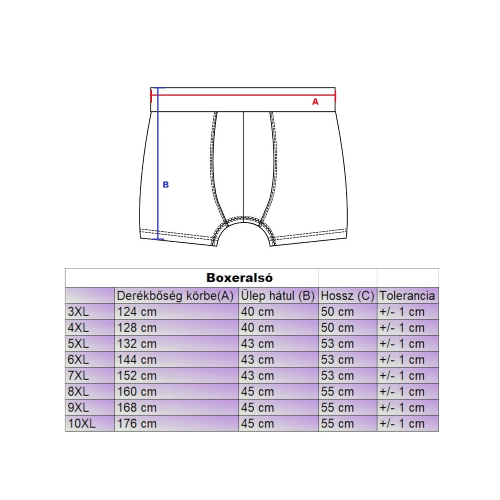 Mérettáblázat a D.Sötétkék férfi nagyméretű boxeralsóhoz: