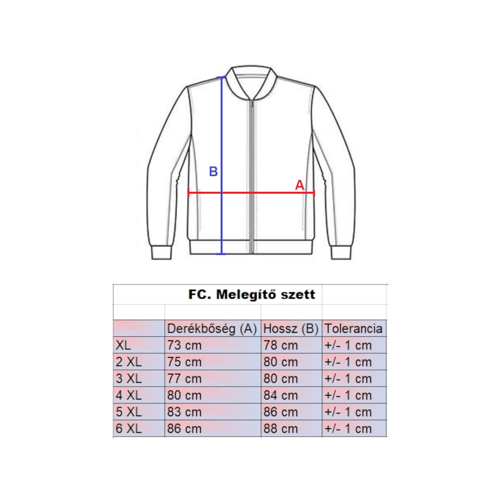 Mérettáblázat az FC.Piros,sötétkék csíkos kapucnis nagyméretű férfi melegítő szetthez:
