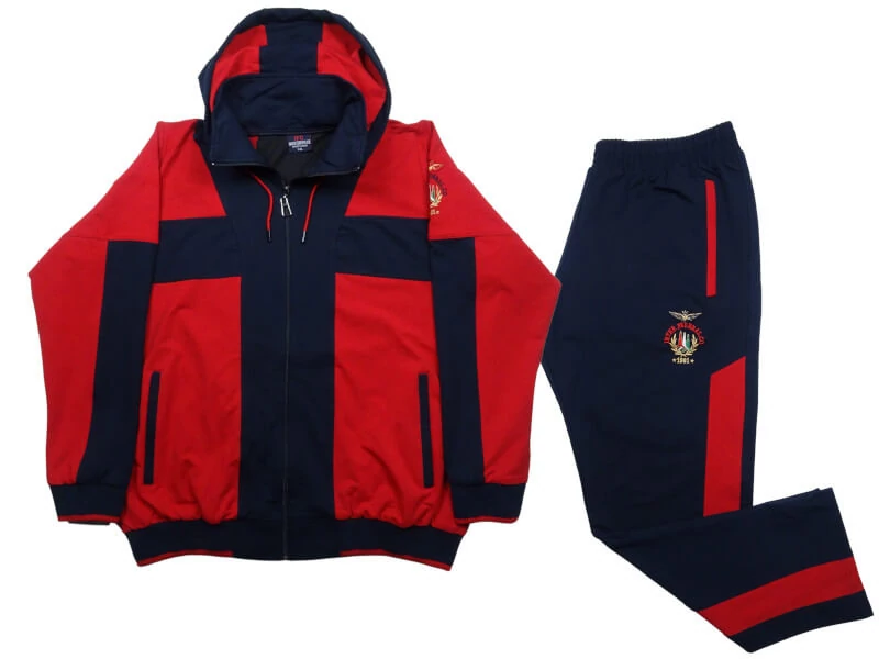 FC.Piros,sötétkék csíkos kapucnis nagyméretű férfi melegítő szett anyaga: