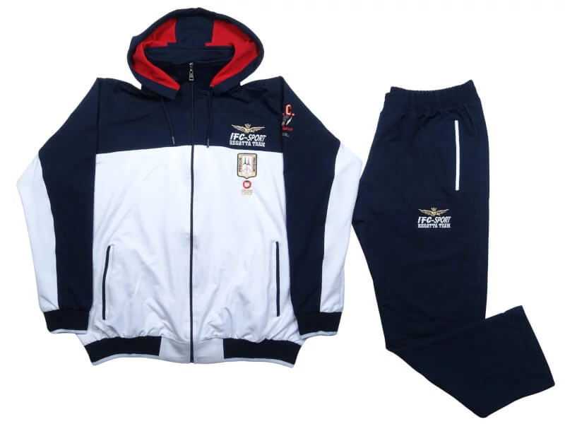 FC.Regatta fehér,sötétkék kapucnis nagyméretű férfi melegítő szett bemutatása