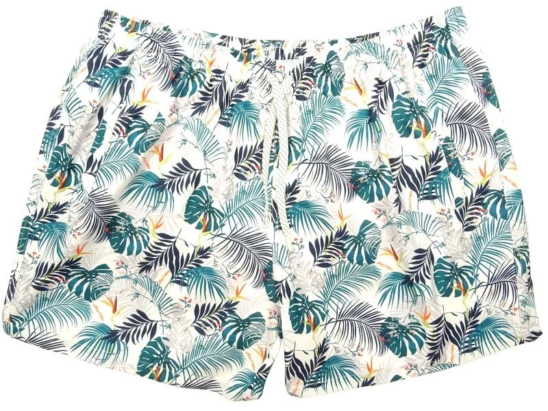 A nyár slágerterméke: nagyméretű férfi fürdőnadrág fehér alapon, trópusi levél mintás. Szinte elképzelhetetlen a nyaralás, kiruccanás, wellness vagy csak az otthoni csobbanás egy kényelmes fürdőnadrág nélkül. Ez a fehér színű úszógatya a gumis, húzózsinóros dereka miatt jól illeszkedik minden férfi testalkathoz, még akkor is, ha nagy mérettel vagy pocakkal rendelkezik! A fürdőnadrágot trópusi levelek és virágok díszítik. Elöl kettő biztonságos cipzáras, hátul egy tépőzáras zseb található. A fürdőnadrág szabad mozgást, kényelemet biztosít így szabadidős tevékenységekhez is kiváló. Anyaga gyorsan szárad, jól szellőzik. Minden férfi ruhatárának kötelező alapdarab. 2XL, 3XL, 4XL, 5XL, 6XL méretekben kapható.