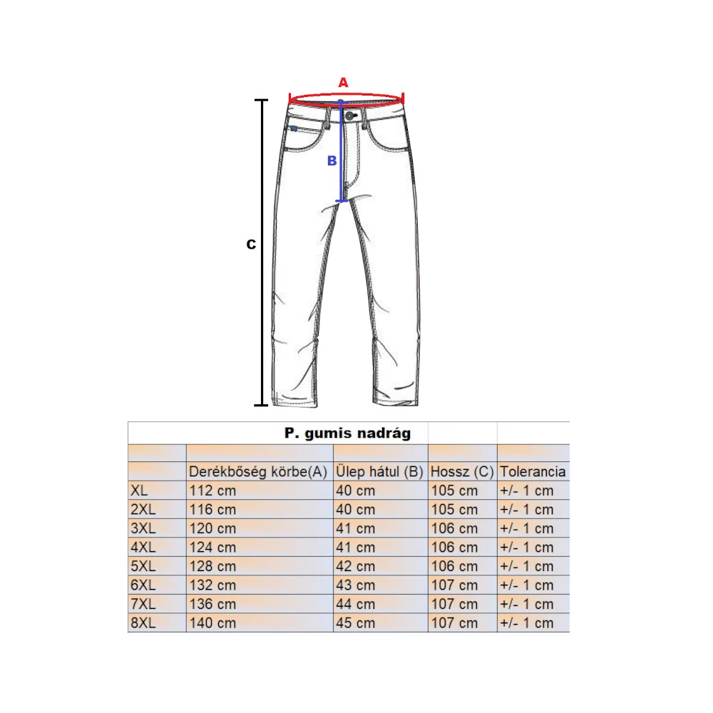 Mérettáblázat a P.Grafit oldalzsebes nagyméretű férfi jogger farmernadrághoz: