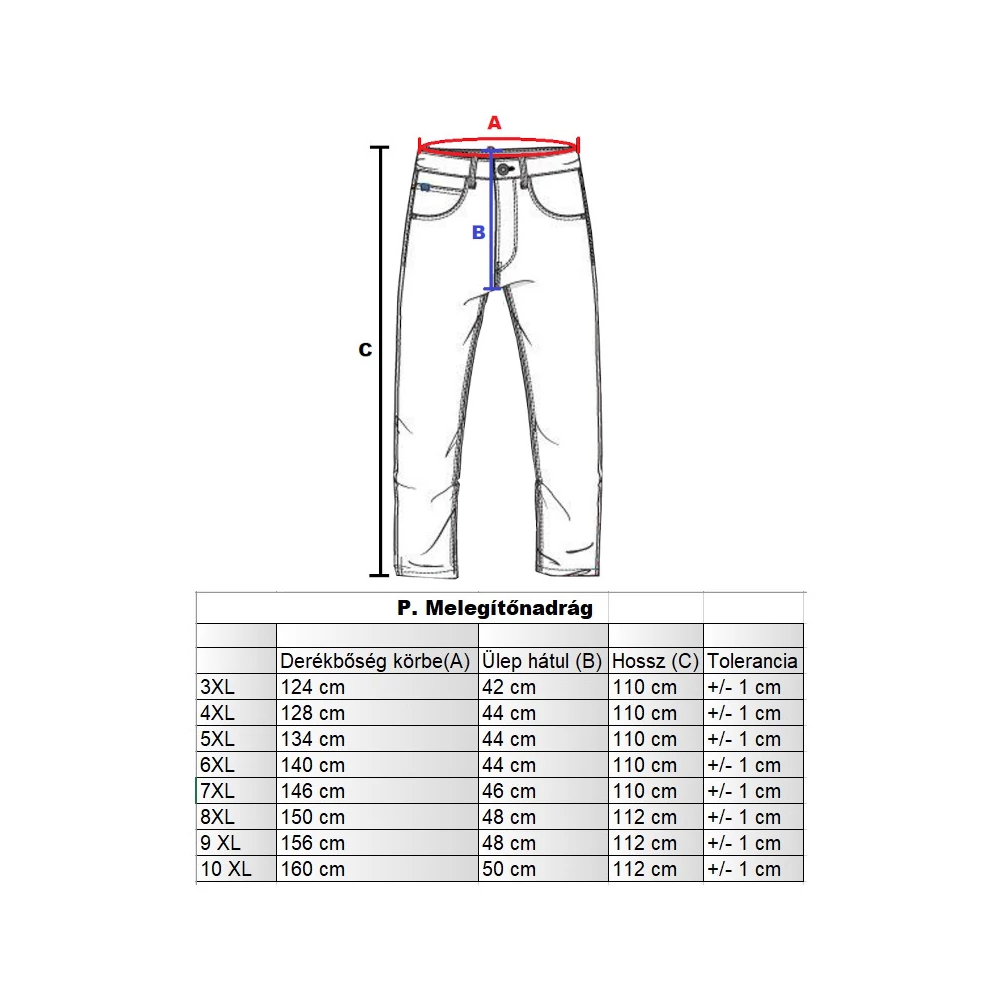 Mérettáblázat a P. Fekete nagyméretű férfi melegítőnadrághoz:
