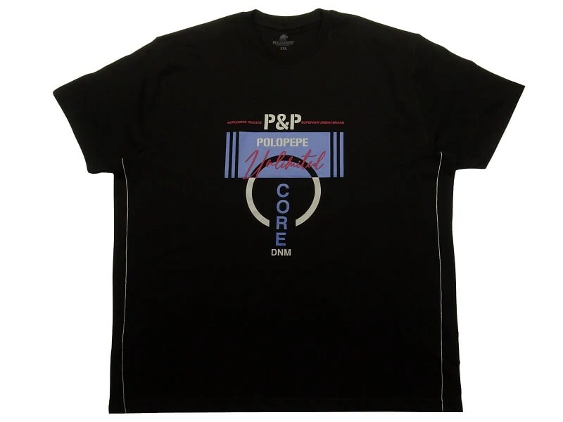 Mérettáblázat a PP.Core fekete nagyméretű férfi pólóhoz: