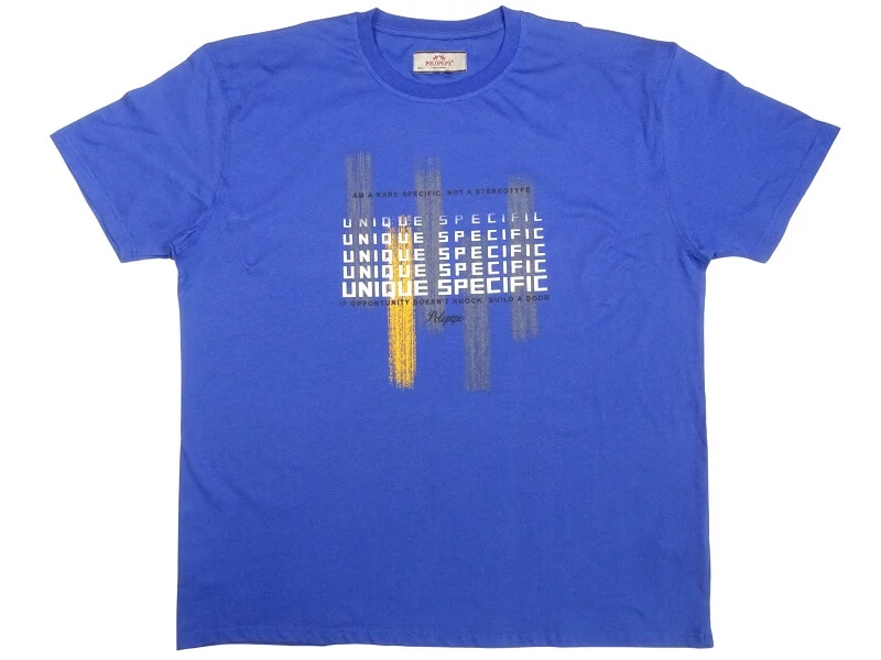 Divatos, nyomott mintás rövid ujjú póló a hétköznapokra: nyáron önmagában, télen akár aláöltözetnek is kiváló. Ez a királykék színű, kerek nyakú nagyméretű férfi póló a legnagyobb hőségben is kellemes viseletet biztosít. Hétköznapokra, munkába járáshoz, szabadidős tevékenységekhez vagy akár sportoláshoz is megfelelő viselet. Egy farmerral vagy rövidnadrággal kiegészítve stílusos megjelenést kölcsönöz. Elejét divatos feliratok és színes csíkok teszik különlegessé. Hűvösebb időben kardigánnal vagy pulóverrel is remekül mutat. Nagy 3XL, 4XL, 5XL, 6XL méretekben kapható. Kényelmes viselet egész napra.