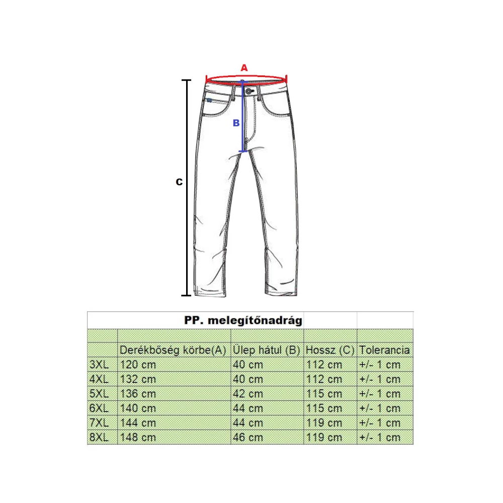 Mérettáblázat a PP.Athletic grafit nagyméretű férfi melegítőnadrághoz: