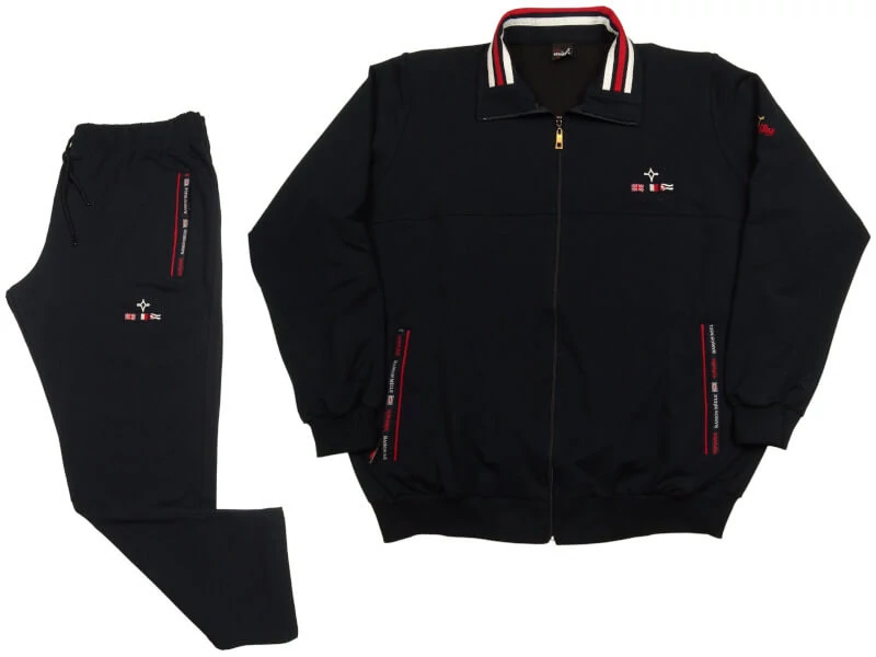 Nincs is jobb, mint hétköznapokon belebújni a kedvenc melegítőnkbe. Ez a sötétkék színű, nagyméretű férfi melegítő szett igazi multifunkciós ruhadarab. Egyaránt hordható otthon, sportoláshoz, házimunkához, horgászáshoz vagy utcára, ha csak gyorsan ki kell ugrania valamiért. A melegítő felső és alsó része tökéletesen passzol egymáshoz, azonban jól kombinálható más ruhadarabokkal is. Felső részének passzés ujj és alj részének, gumis és madzagos nadrágjának köszönhetően a nagyobb pocakkal rendelkező férfiak is komfortosan érzik magukat benne. A melegítő szett végig cipzáras felső része és anyag kombinációja egyedivé varázsolja viselőjét. Négy biztonságos cipzáras zsebbel rendelkezik amiben elrakhatja kisebb tárgyait. A felsőt egyedivé teszi a gallér, a zsebek dísz pántja valamint a hímzett feliratos és zászlók. A cipzáras zsebbel rendelkező, sötétkék színű egyenes szárú nadrág megfelelő kényelmet biztosít minden alkatú férfi részére. Legyen jól öltözött, bármilyen élethelyzetben. Nagy méretekben kapható 2XL-6XL-ig!