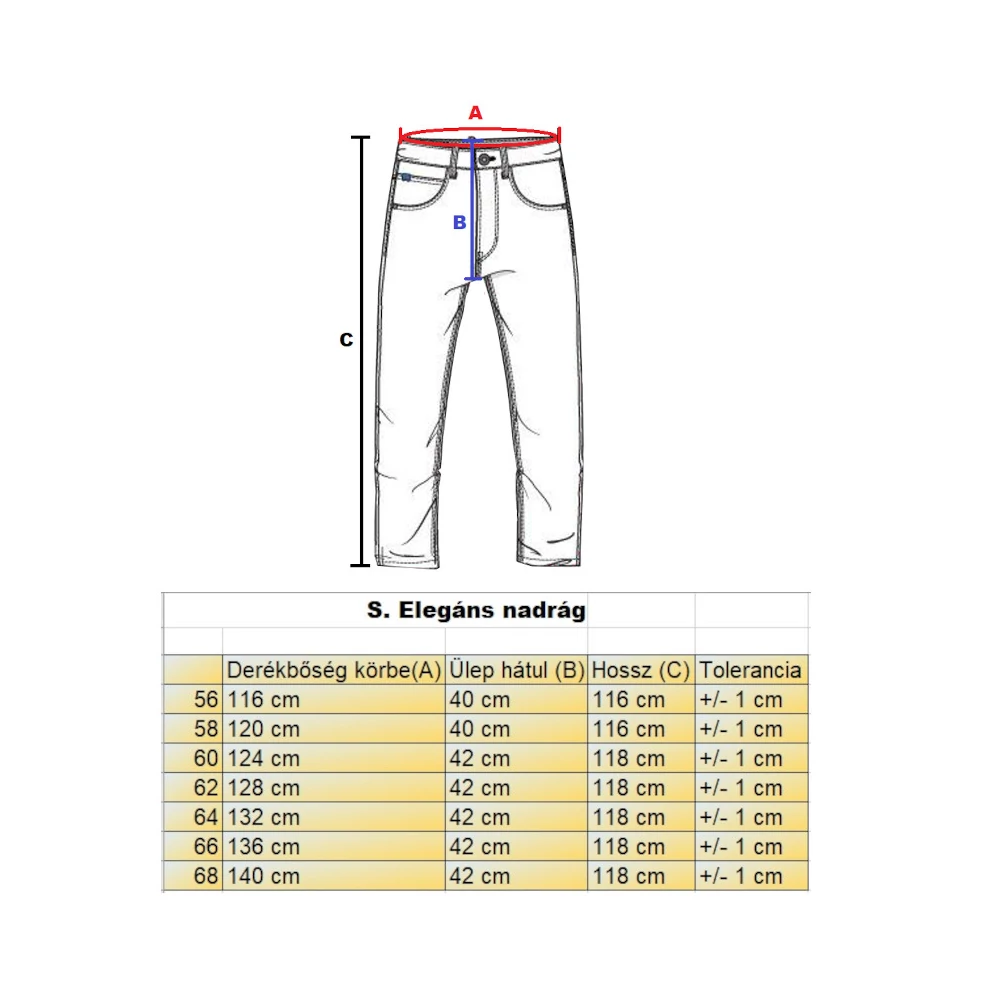 Mérettáblázat az S.Kék kockás férfi nagyméretű alkalmi nadrághoz: