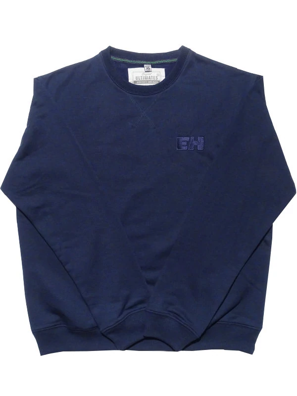 Sötétkék színű, nagyméretű, kerek nyakú férfi pulóver. Sima, egyszerű, mellkasán apró hímzett felirattal, passzés ujj és aljvéggel. Sportos hétköznapi viselet. Vastag anyagból készült, belül bolyhos. Nagy méretben rendelhető, 2XL-6XL-ig!