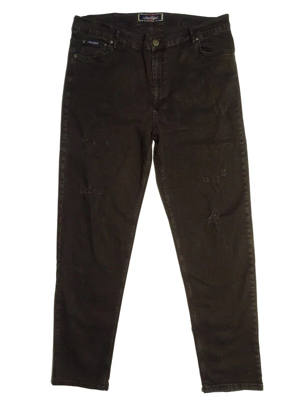 Nagyméretű divatos, szakadt, egyenes szárú, fekete színű, férfi hosszú farmernadrág. Rugalmas, puha anyagának köszönhetően nagyon kényelmes viselni akár egész nap. Egy jó farmernadrág alapdarab minden férfi ruhatárában! Divatos, sportos megjelenéshez, hétköznapokra viselje pólóval, elegánsabb megjelenéshez inggel és zakóval. Ez a fiatalos farmernadrág kifejezetten a nagy méretekkel rendelkező férfiak igényei alapján lett megalkotva. Rugalmas anyaga biztosítja a szabad és kényelmes mozgást. Ha szeretne egy igazán trendi nadrágot, mely igazodik alakjához, válassza ezt a Szakadt fekete hosszú farmernadrágot mely nagy méretben rendelhető!