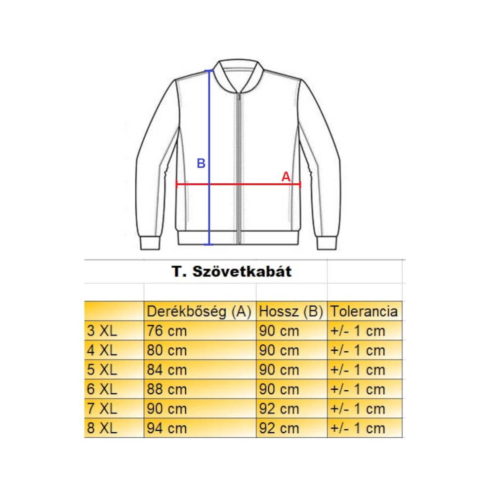 Mérettáblázat a T.Barna nagyméretű férfi szövetkabáthoz: