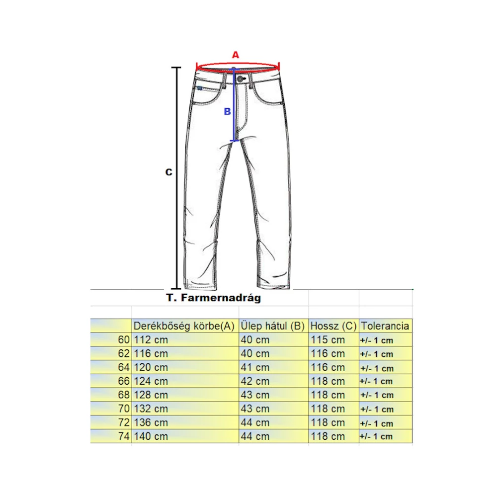 Nagyméretű klasszikus, egyenes szárú, világoskék színű, férfi hosszú farmernadrág. Rugalmas, puha anyagának köszönhetően nagyon kényelmes. Egy jó farmernadrág nem hiányozhat egyetlen férfi ruhatárából sem. Kapható egészen extra nagy méretben is.