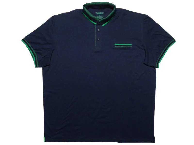 Férfi nagyméretű, sötétkék színű, rövid ujjú galléros póló, mely sportos és egyben elegáns megjelenést kölcsönöz viselőjének. A gallért, az álzsebet és a passzés ujjvégeket vidám zöld színű apró minta és csík díszíti. Sima de mégis egyedi! Ha szereti a divatos de egyszerű megjelenést válassza ezt a rendkívül kényelmes, T. Sötétkék, zöld mintás galléros rövid ujjú puha ingpólót. Hétköznapokra vagy baráti összejövetelekre kiváló választás. Extra nagy méretekben is kapható! M-7XL-ig.